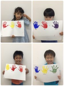片手ずつ違う色を付けて、手を合わして違う色を作ってみました🧑‍🎨