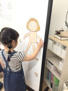 Let’s make a bodyのアクティビティをして、楽しみながら体の各部分を覚えました!